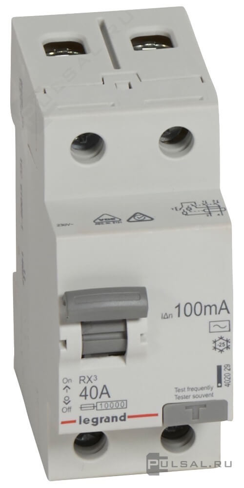 • Выключатель дифференциального тока (УЗО) RX³, 2 полюса, 40А, тип - AC, 30 мА