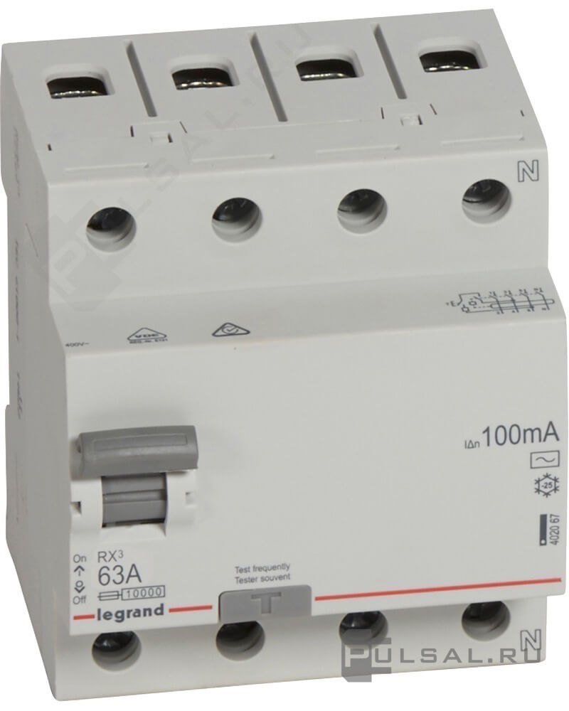 • Выключатель дифференциального тока (УЗО) RX³, 2 полюса, 63А, тип - AC, 100 мА