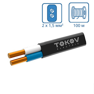 • Кабель плоский ППГ-Пнг(А)-HF 3х1, 5 (бухта 100м), TOKOV ELECTRIC