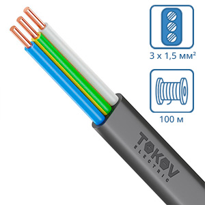 Кабель плоский ППГ-Пнг(А)-HF 3х1, 5 (бухта 100м), TOKOV ELECTRIC