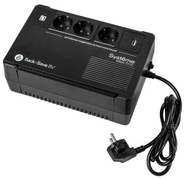 • Источник бесперебойного питания 600 ВА (розетки IEC), Back-Save BV (BVSE), мощность -  600 ВА/ 360 Вт, цвет -  черный
