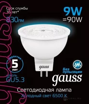 Basic, цоколь - GU5.3, мощность - 7Вт, световой поток - 630Лм, цветовая температура - 6500К, не диммируется, 101505307, Gauss