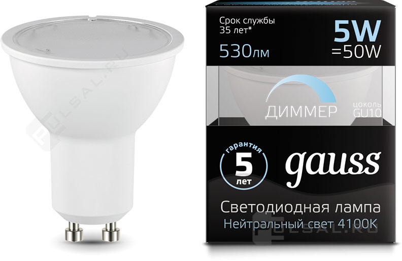 Black, цоколь - GU10, мощность - 5Вт, световой поток - 530Лм, цветовая температура - 4100К, не диммируется, 101506205, Gauss