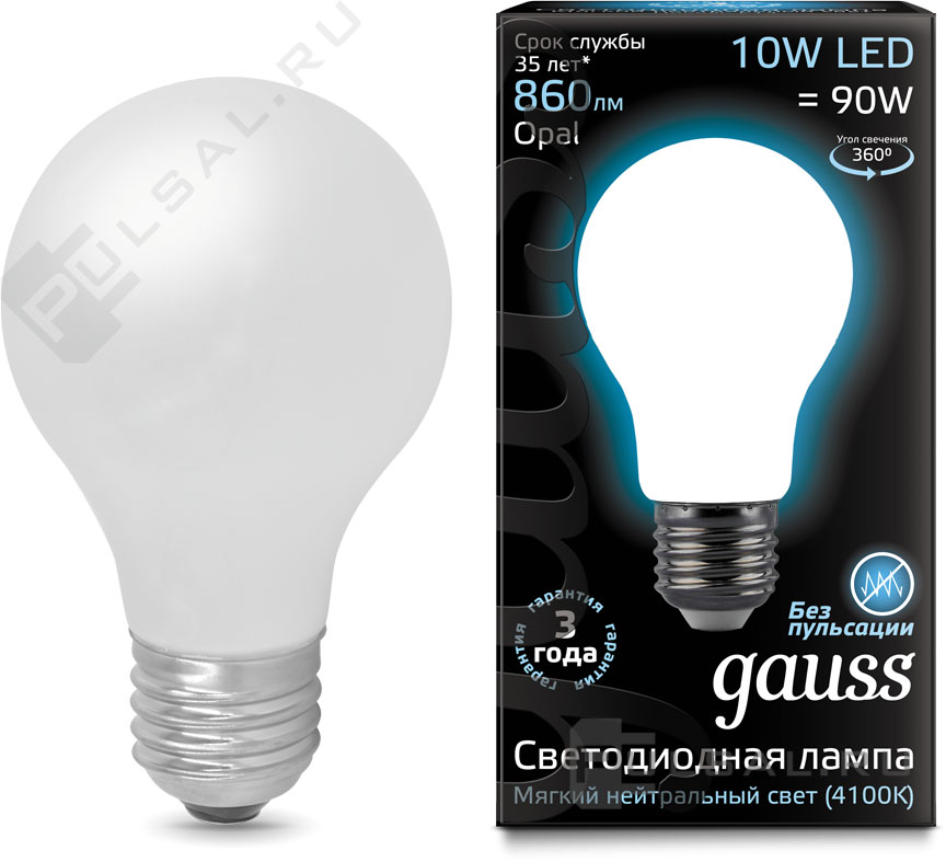 Black, цоколь - E27, мощность - 10Вт, световой поток - 920Лм, цветовая температура - 4100К, не диммируется, 102502210, Gauss