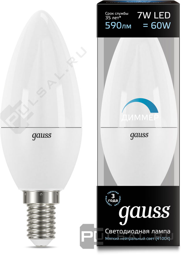 Black, цоколь - E14, мощность - 7Вт, световой поток - 590Лм, цветовая температура - 4100К, диммируется, 105101207-D, Gauss
