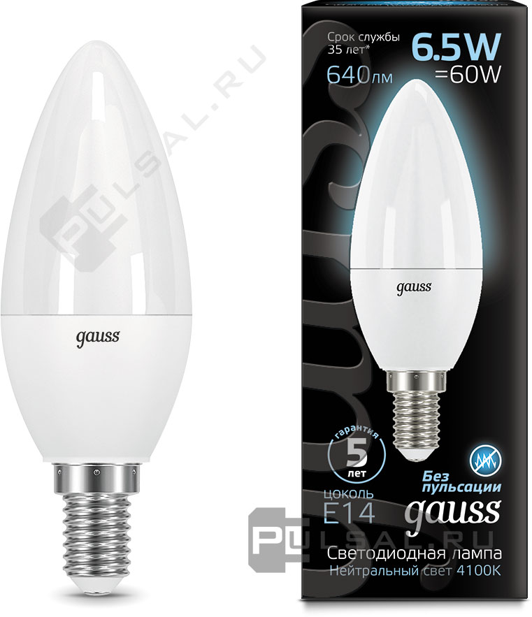 Black, цоколь - E14, мощность - 5Вт, световой поток - 450Лм, цветовая температура - 4100К, не диммируемая, 103801205T, Gauss