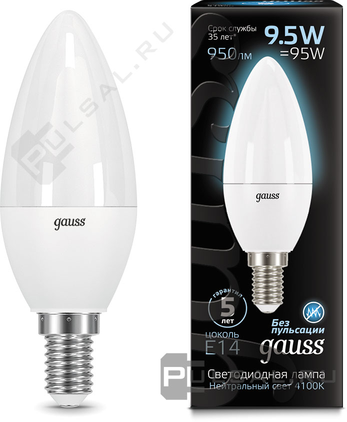 Black, цоколь - E14, мощность - 5Вт, световой поток - 450Лм, цветовая температура - 4100К, не диммируемая, 103801205T, Gauss
