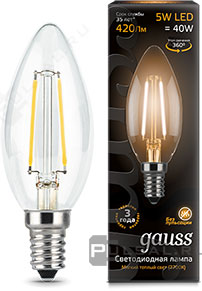 Black, цоколь - E14, мощность - 5Вт, световой поток - 420Лм, цветовая температура - 2700К, не диммируемая, 103801105P, Gauss