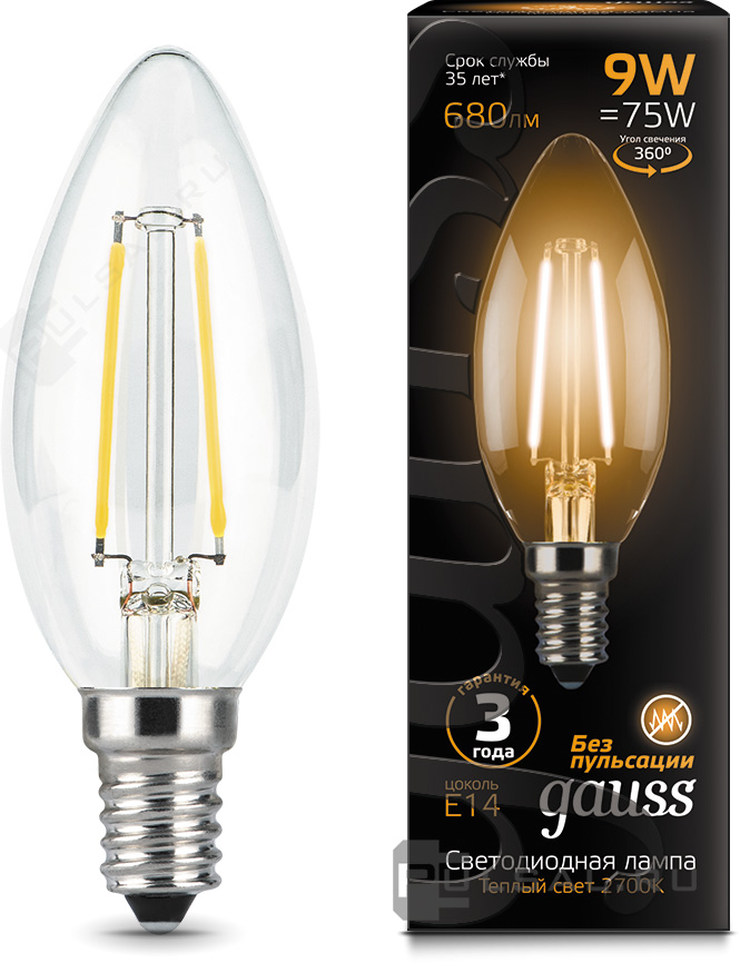 Black, цоколь - E14, мощность - 5Вт, световой поток - 420Лм, цветовая температура - 2700К, не диммируемая, 103801105P, Gauss