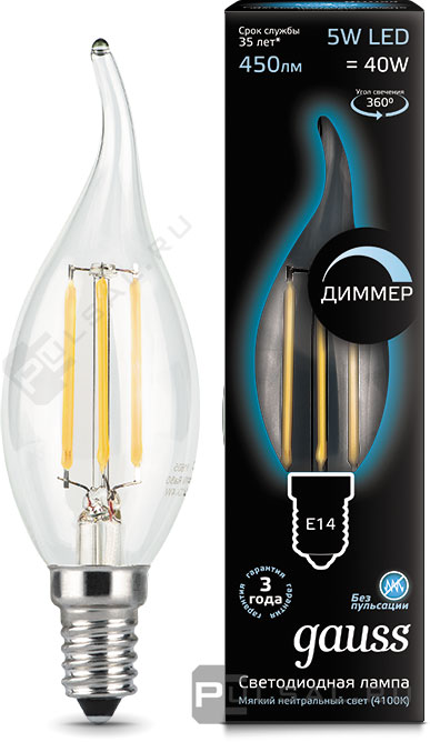 Black, цоколь - E14, мощность - 5Вт, световой поток - 450Лм, цветовая температура - 4100К, не диммируемая, 103801205T, Gauss