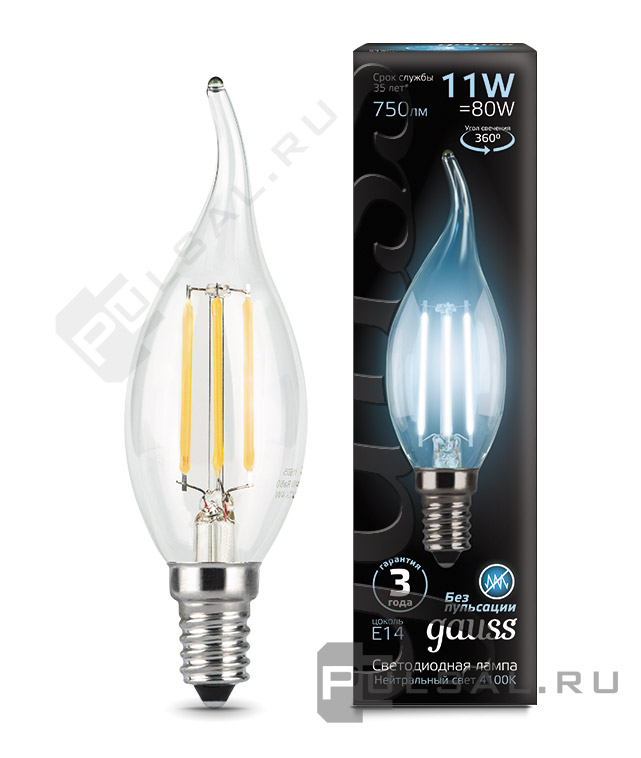 Лампа прозрачная (3 лампы в упаковке) филаментная Black, цоколь - E14, мощность - 5Вт, световой поток - 450Лм, цветовая температура - 4100К, не диммируемая, 103801205T, Gauss