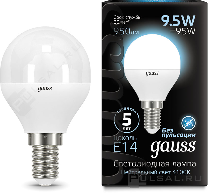 Black, цоколь - E14, мощность - 5Вт, световой поток - 450Лм, цветовая температура - 4100К, не диммируемая, 103801205T, Gauss