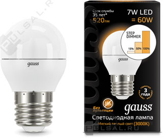 Black, цоколь - E27, мощность - 7Вт, световой поток - 560Лм, цветовая температура - 3000К, диммируется, 105102107-D, Gauss