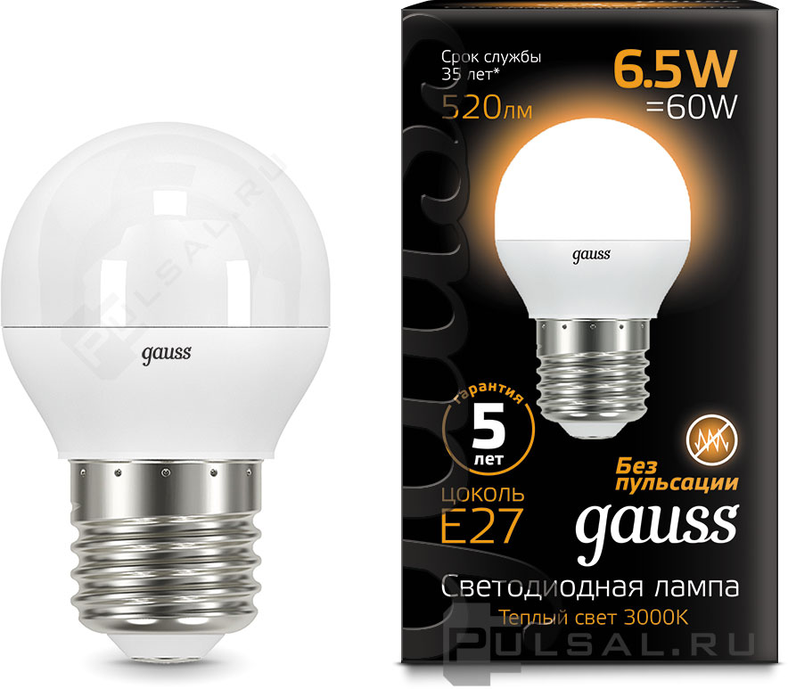 Black, цоколь - E27, мощность - 9.5Вт, световой поток - 890Лм, цветовая температура - 3000К, не диммируется, 103102110, Gauss