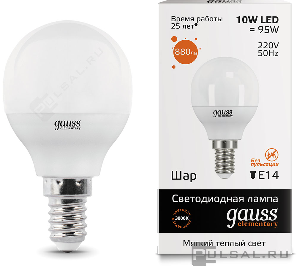 Elementary, цоколь - E14, мощность - 12Вт, световой поток - 880Лм, цветовая температура - 3000К, не диммируется, 53112, Gauss