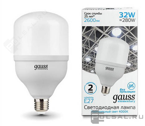 Elementary, цоколь - E27, мощность - 50Вт, световой поток - 4400Лм, цветовая температура - 4000К, не диммируется, 63225, Gauss