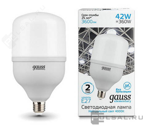 Лампа светодиодная Elementary, цоколь - E27, мощность - 42Вт, световой поток - 3600Лм, цветовая температура - 4000К, не диммируется, 63224, Gauss