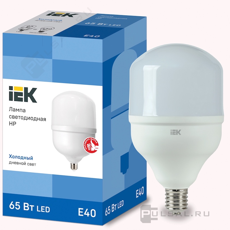 Лампы IEK, цоколь - E40, мощность - 60Вт, световой поток - 5600Лм, цветовая температура - 6500К, не диммируется, LLE-HP-80-230-65-E40, IEK