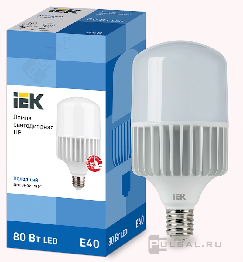 Лампы IEK, цоколь - E40, мощность - 60Вт, световой поток - 5600Лм, цветовая температура - 6500К, не диммируется, LLE-HP-65-230-65-E40, IEK