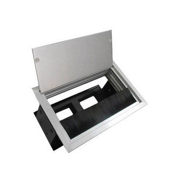 Блок настольный для розеток встраиваемый с крышкой для столов и мебели, 2 поста, 4 модуля, цвет - алюминий