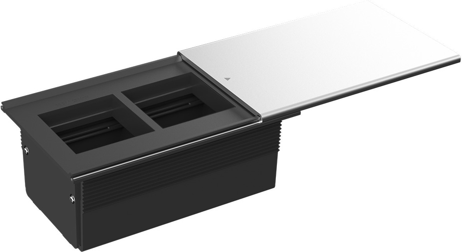 Настольный встраиваемый розеточный блок Static Лючки DDSB, для столов и мебели, 4 поста, 8 модулей, цвет - черный
