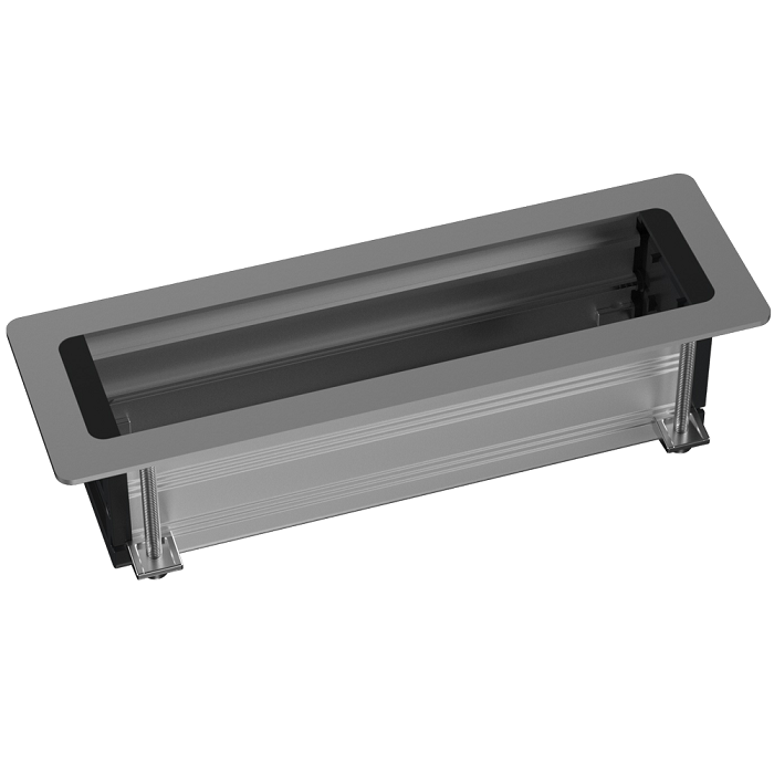 Настольный розеточный блок Ovaledesign (черные пластиковые торцевые заглушки) Лючки DDSB, для столов и мебели, 5 постов, 5+5 модулей, цвет - алюминий