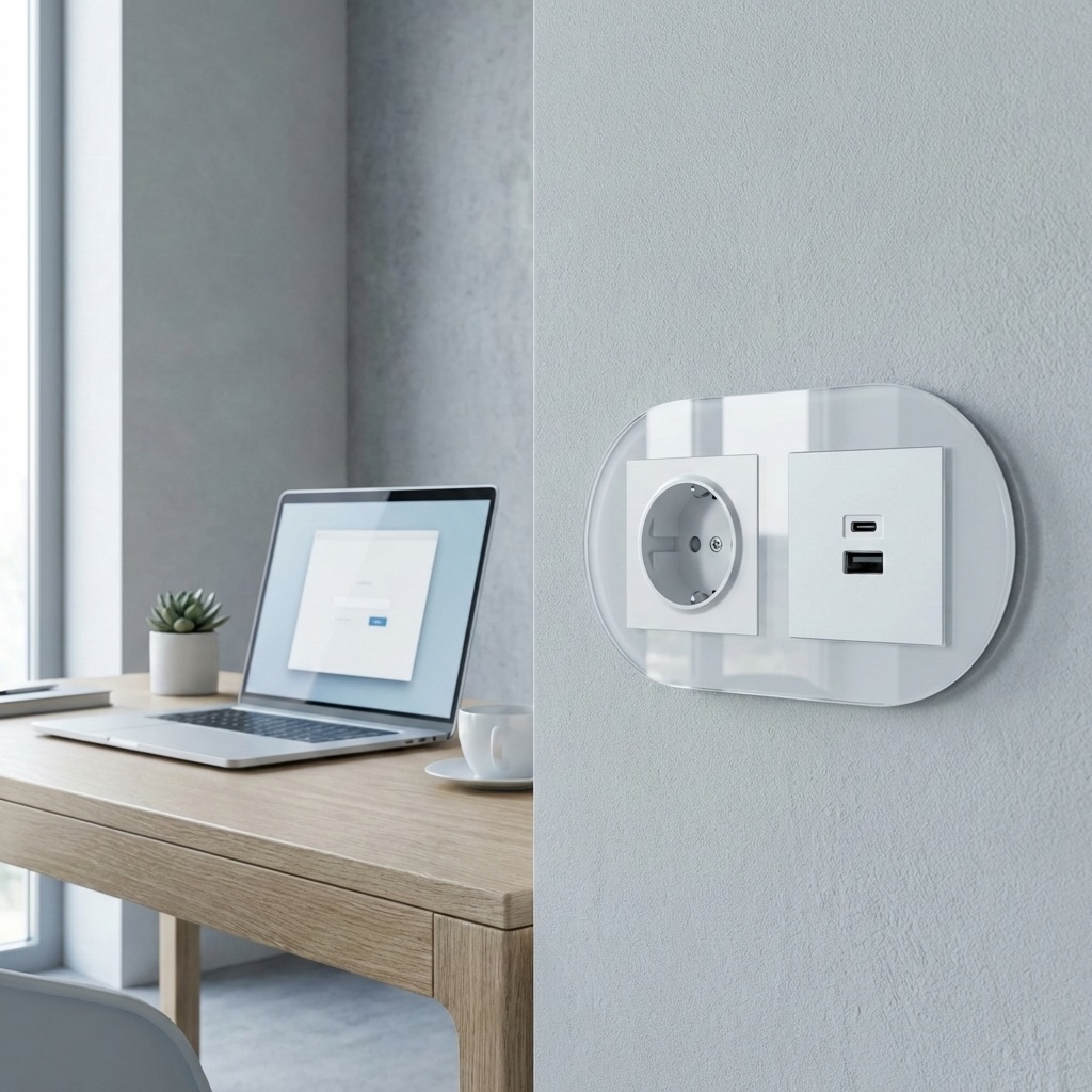 Donel A07 NATURAL ROUND,  розетка, розетка usb, цвет: белое стекло