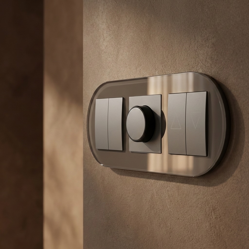 Donel A07 NATURAL ROUND, двухклавишные выключатели и диммер, цвет: стекло дымчатое