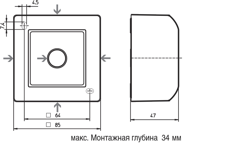 1-местная:    85,0 × 85,0 × 47,0
