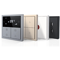 Помимо устройства KNX в серии представлены устройства для классической проводки и многопостовые рамки для них: выключатели, кнопки, электрические розетки, розетки USB, HDMI, ТВ, LAN.