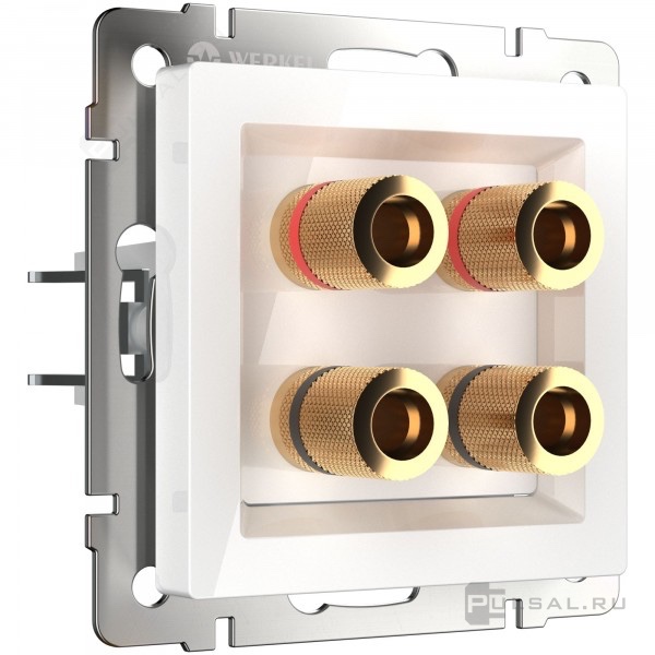 Розетка акустическая Alumax, Split, Slab, Senso, Baguette, Acrylic, Platinum, Elite, Snabb, Stream, Flock, Stark, Fiore, Favorit, Diamant, Aluminium, Antik, Metallic, 2 пары, цвет - белый