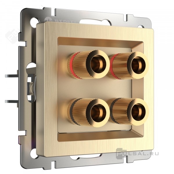 Розетка Alumax, Split, Slab, Senso, Baguette, Acrylic, Platinum, Elite, Snabb, Stream, Flock, Stark, Fiore, Favorit, Diamant, Aluminium, Antik, Metallic, со шторками, с заземлением, одинарная, винтовые клеммы, цвет - шампань рифленый