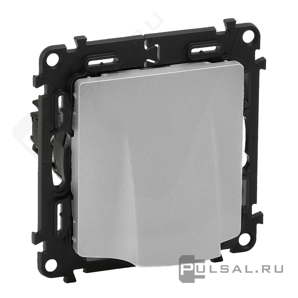 Переключатель перекрестный Valena Life, одноклавишный, с подсветкой, цвет - алюминий