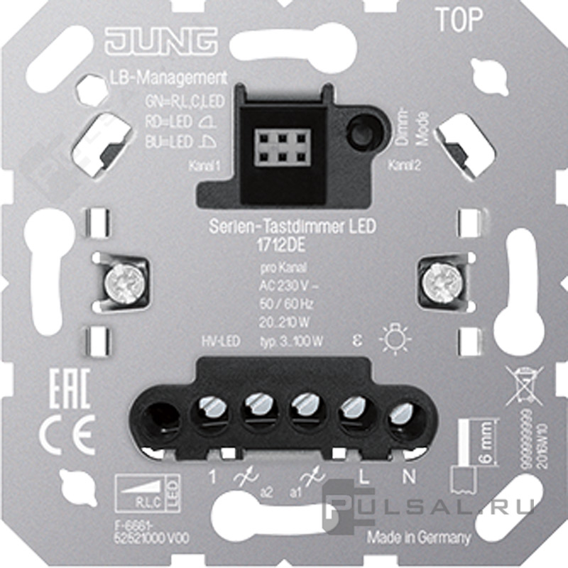 Механизм двухклавишного светорегулятора (диммера) 20-210 Вт/ВА, для LED 3-50 Вт A VIVA, A creation, A 550, A flow, AS 500, CD 500, CD plus, LS 990, LS plus, LS ZERO, LS-design, SL 500, клавишный, с возможностью управления с 2-х мест, лампы накаливания и галогенные 220В (R), лампы с индукционным (обмоточным) трансформ.(L), лампы с электронным (емкостным) трансформ.(C), диммируемые лампы LED 220В (LEDi тип L), диммируемые лампы LED 220В (LEDi тип C)