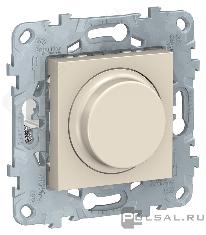 Терморегулятор 10А, НО-контакт, 230В Unica New Pure, Unica New Studio, поворотный, датчик t° пола (внешний), без таймера, цвет - бежевый