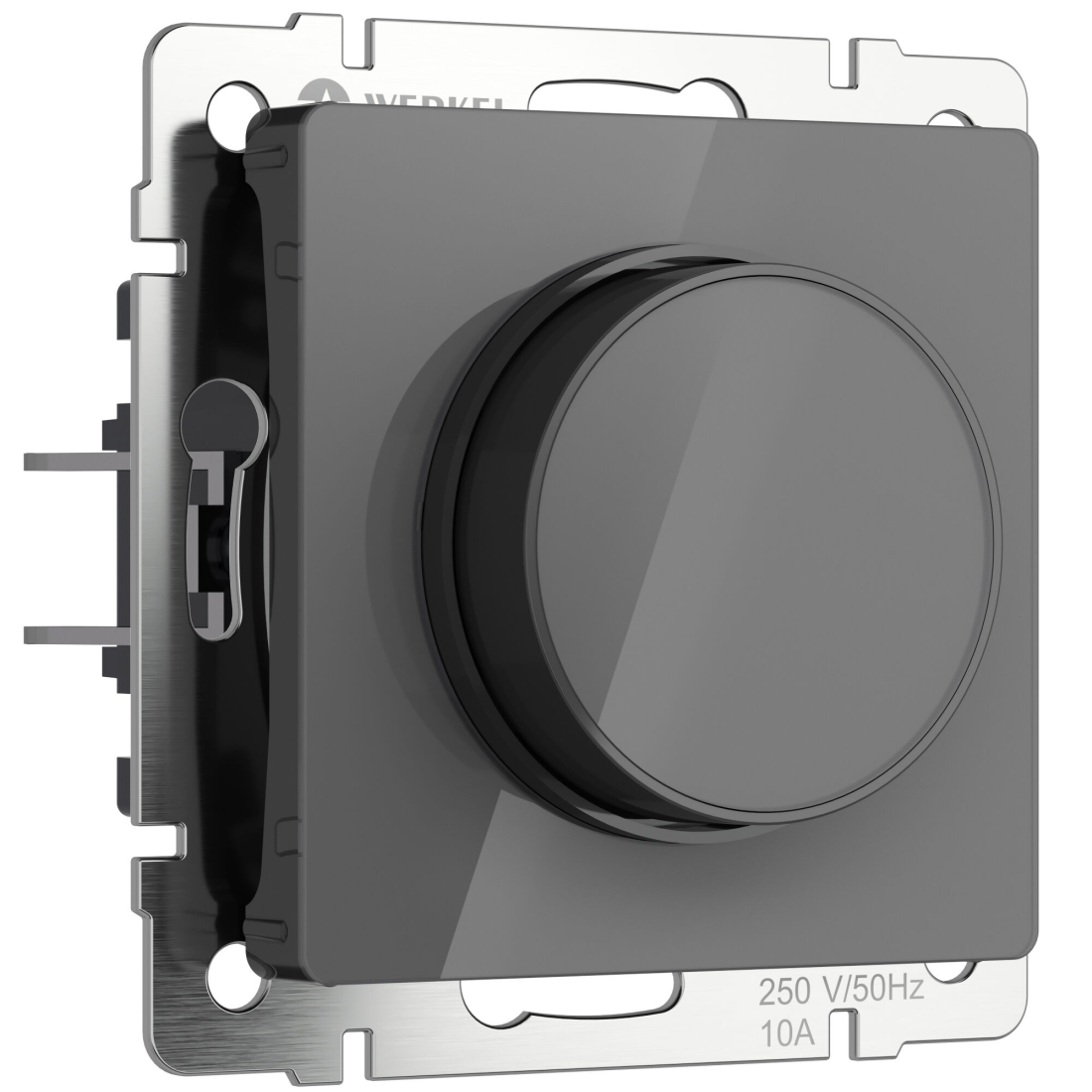 Светорегулятор (диммер) 600 Вт/ВА, для LED 200 Вт/ВА Alumax, Split, Slab, Senso, Baguette, Acrylic, Platinum, Elite, Snabb, Stream, Flock, Stark, Fiore, Favorit, Diamant, Aluminium, Antik, Metallic, поворотно-нажимной, лампы накаливания и галогенные 220В (R), лампы с электронным (емкостным) трансформ.(C), диммируемые лампы LED 220В (LEDi тип C), цвет - графит акрил