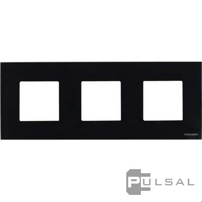 Рамка (итальянский стандарт) Zenit, 3 модуля, цвет - черное стекло, стекло