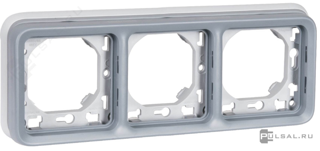 Рамка с суппортом Plexo, 3 поста, цвет - серый, пластмасса