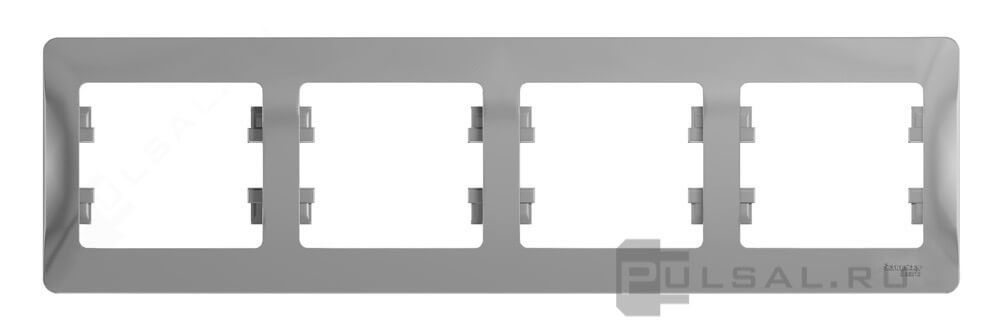 Рамка Glossa, 4 поста, цвет - алюминий, пластмасса