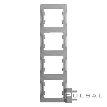 Рамка Glossa, 4 поста, цвет - алюминий, пластмасса