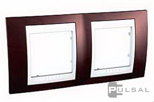 Рамка Unica Хамелеон, 2 поста, цвет - гранатовый, белый, пластмасса