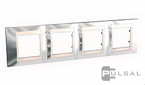 Рамка Unica Хамелеон, 4 поста, цвет - хром, белый, металл
