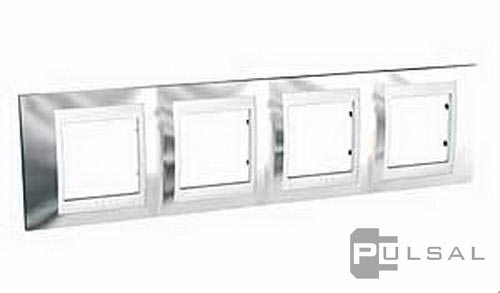 Рамка Unica Хамелеон, 4 поста, цвет - хром, белый, металл