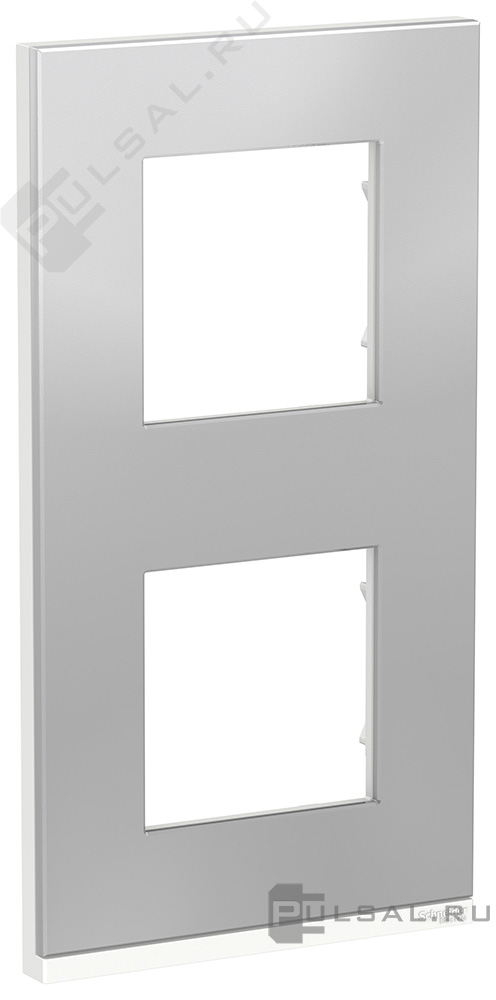 Рамка Unica New Pure, 2 поста, цвет - алюминий матовый, белый, металл