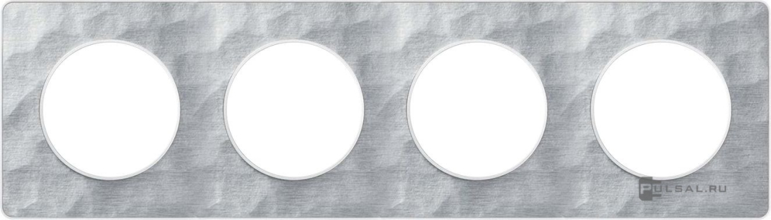 Рамка Odace, 4 поста, цвет - алюминий полированный, белый, металл