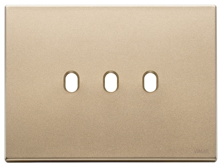 Рамка-накладка для тумблерного выключателя, на 2 механизма Eikon EXE Vintage, 3 модуля, цвет - золото матовое, металл
