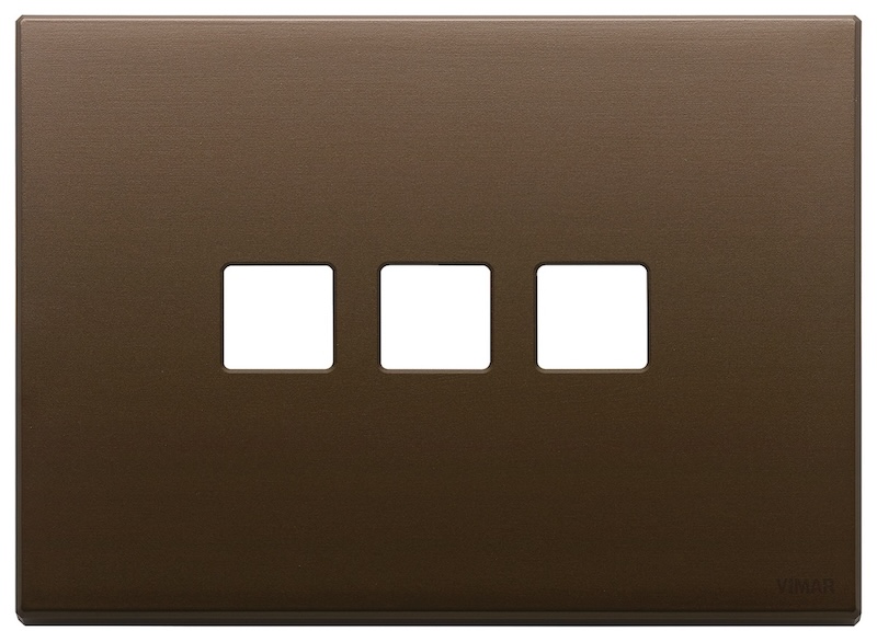 Рамка-накладка для выключателя Flat, на 1 механизм Eikon EXE Flat & Tondo, 3 модуля, цвет - бронза темная брашированная, металл