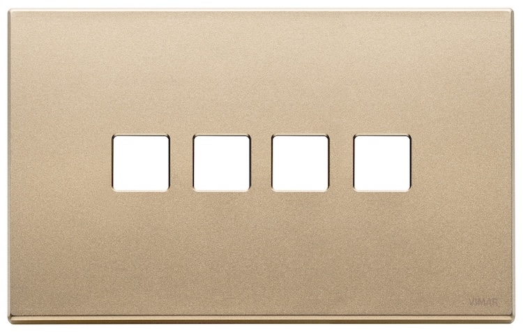 Рамка-накладка для выключателя Flat, на 4 механизма Eikon EXE Flat & Tondo, 4 модуля, цвет - золото, металл