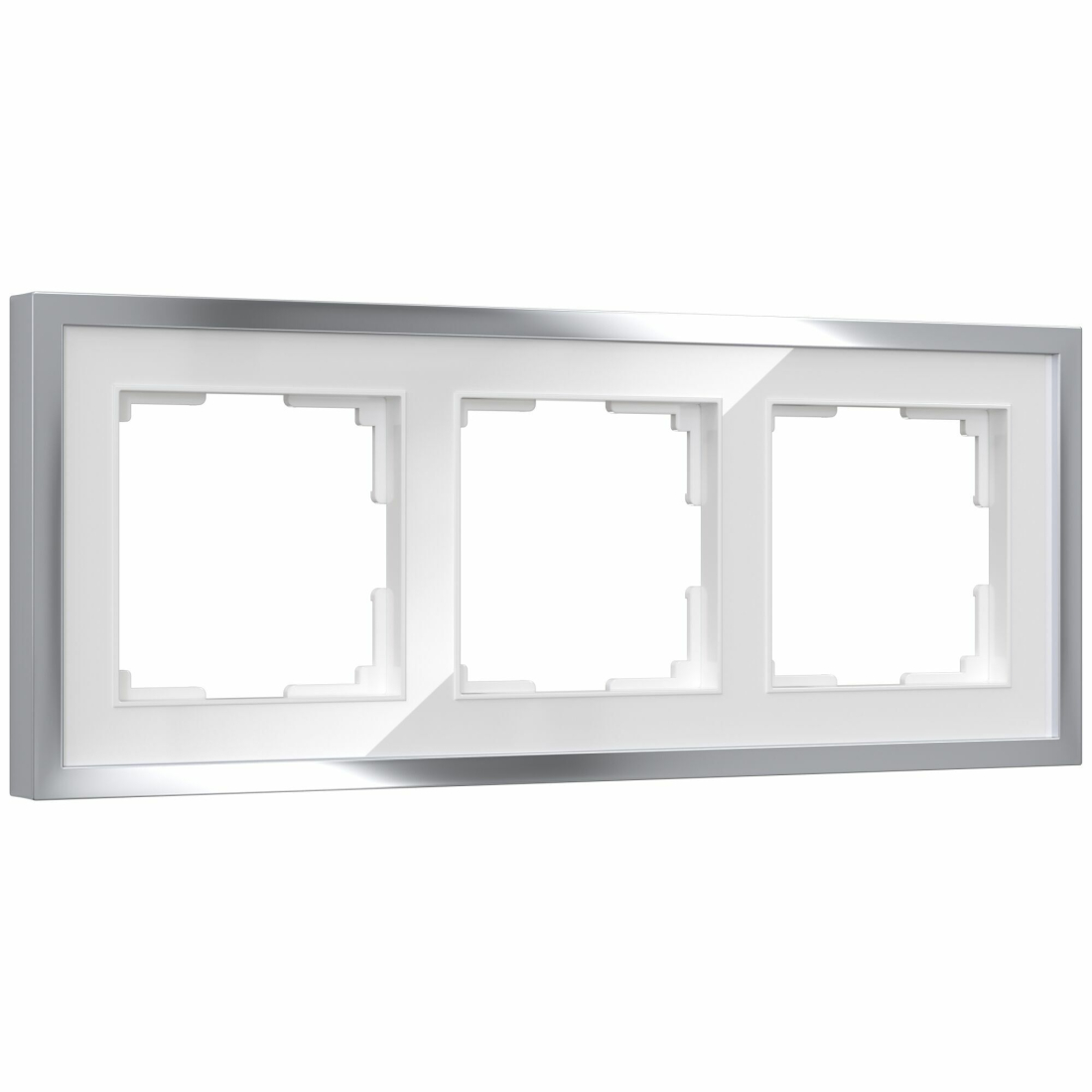 Рамка Baguette, 3 поста, цвет - серебро, белый, металл, стекло акриловое