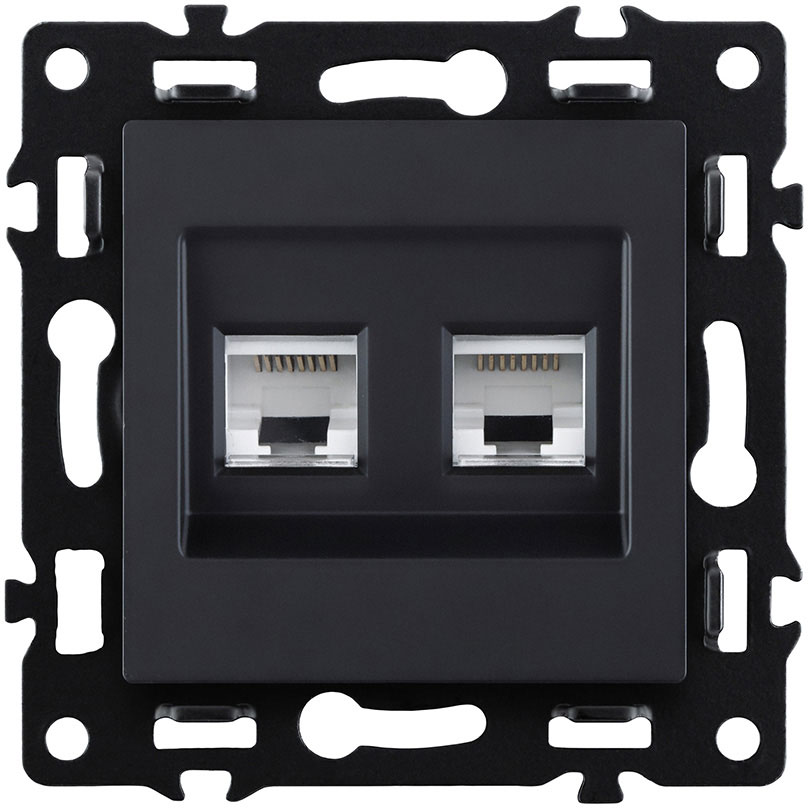 Розетка компьютерная 2 x RJ45 Cat.6 Asthetik, двойная, цвет - черный